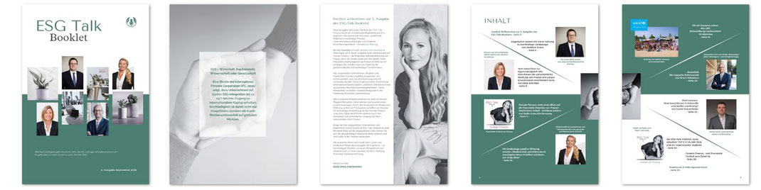 Zweimal im Jahr erscheint zum Podcast ergänzend das -Booklet – eine kompakte Sammlung inspirierender Beiträge aus Wirtschaft, Finanzwelt und Nachhaltigkeit. Es gibt vertiefte Einblicke, praxisnahe Strategien und fundiertes ESG-Wissen. Natürlich gratis zum Download und als Flipbook mit weiteren Links und QR-Codes.